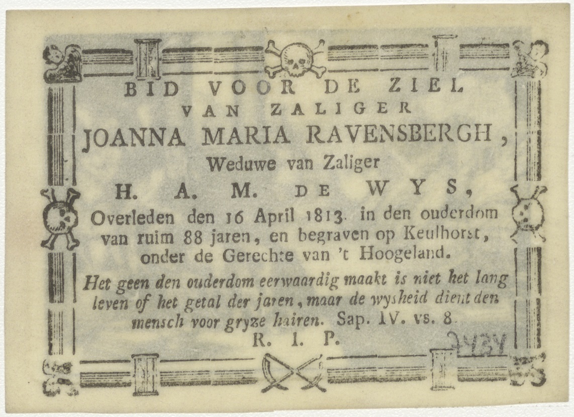 H. Mattheus, kz. Bid voor ziel Ravensbergh-de Wijs (+1813) onder de gerechte van 't Hoogeland
