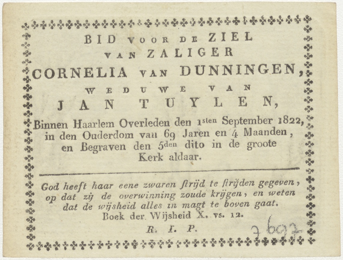 H. Joseph (Jozef), kz. Bid voor ziel Van Dunningen-Tuylen (+1822) Haarlem