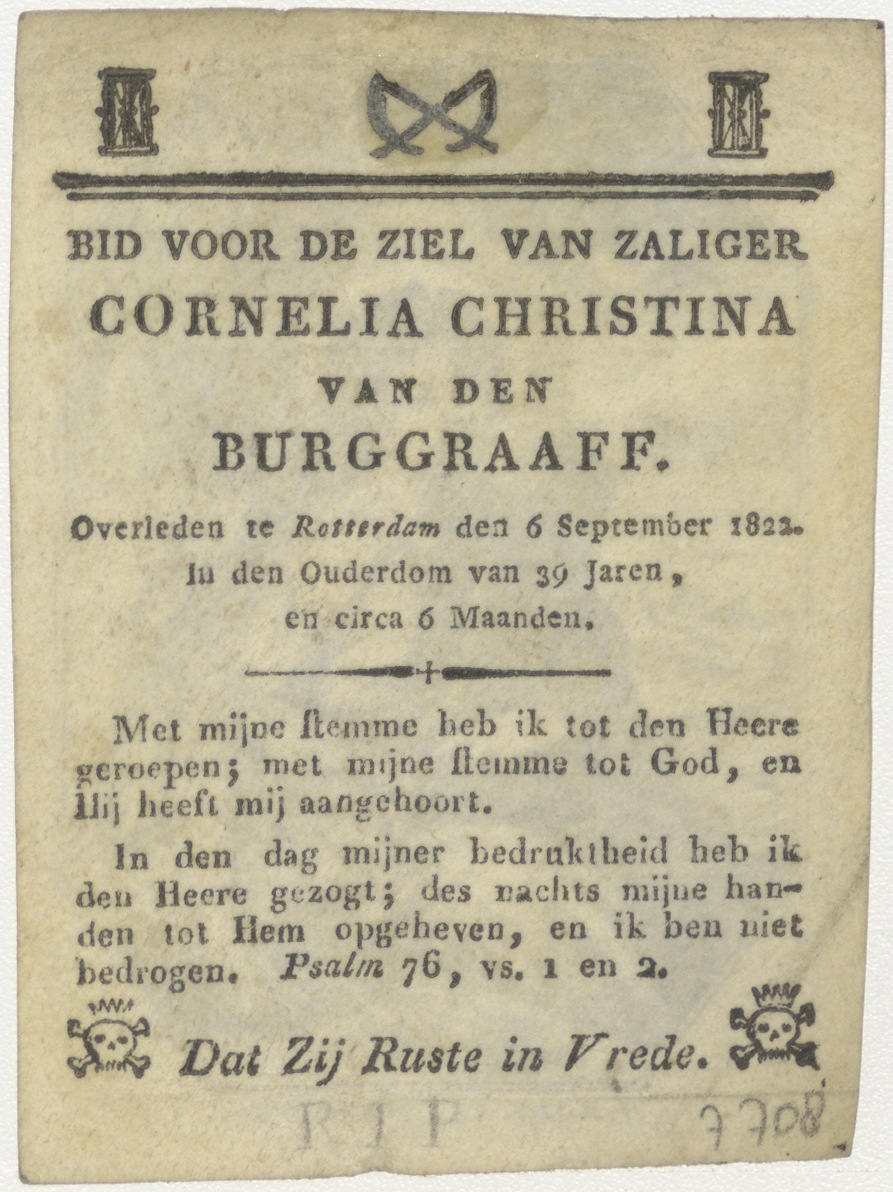 H. Johannes de Doper, kz. Bid voor ziel Van den Burggraaff (+1822) Rotterdam