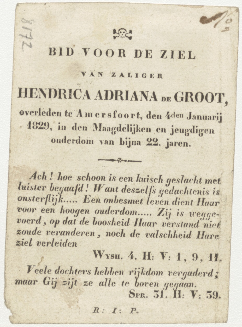 Zondvloed, ark van Noach (Frans), kz. Bid voor ziel De Groot (+1829) Amersfoort