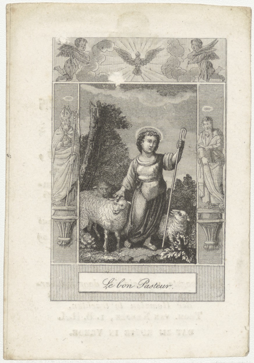 Christuskind als Goede Herder (Frans), kz. Bid voor ziel Wellens-van den Bogaert (+1829) Heusen