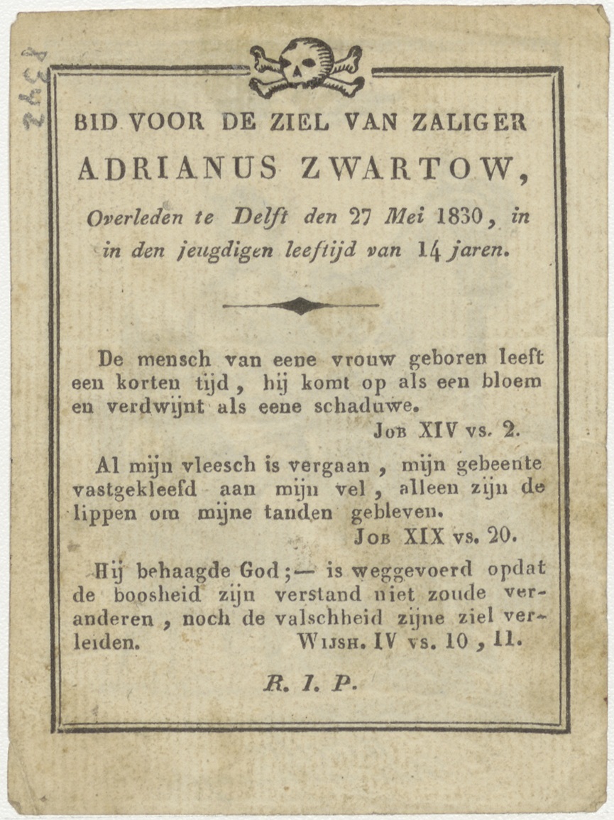 H. Cecilia (Frans), kz. Bid voor ziel Zwarton (+1830) Delft