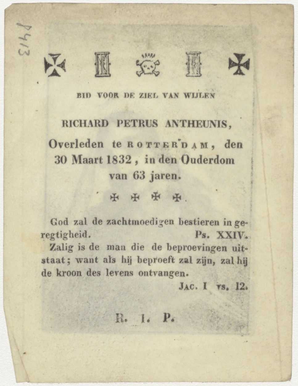 Maria(?), kz. Bid voor ziel Antheunis (+1832) Rotterdam