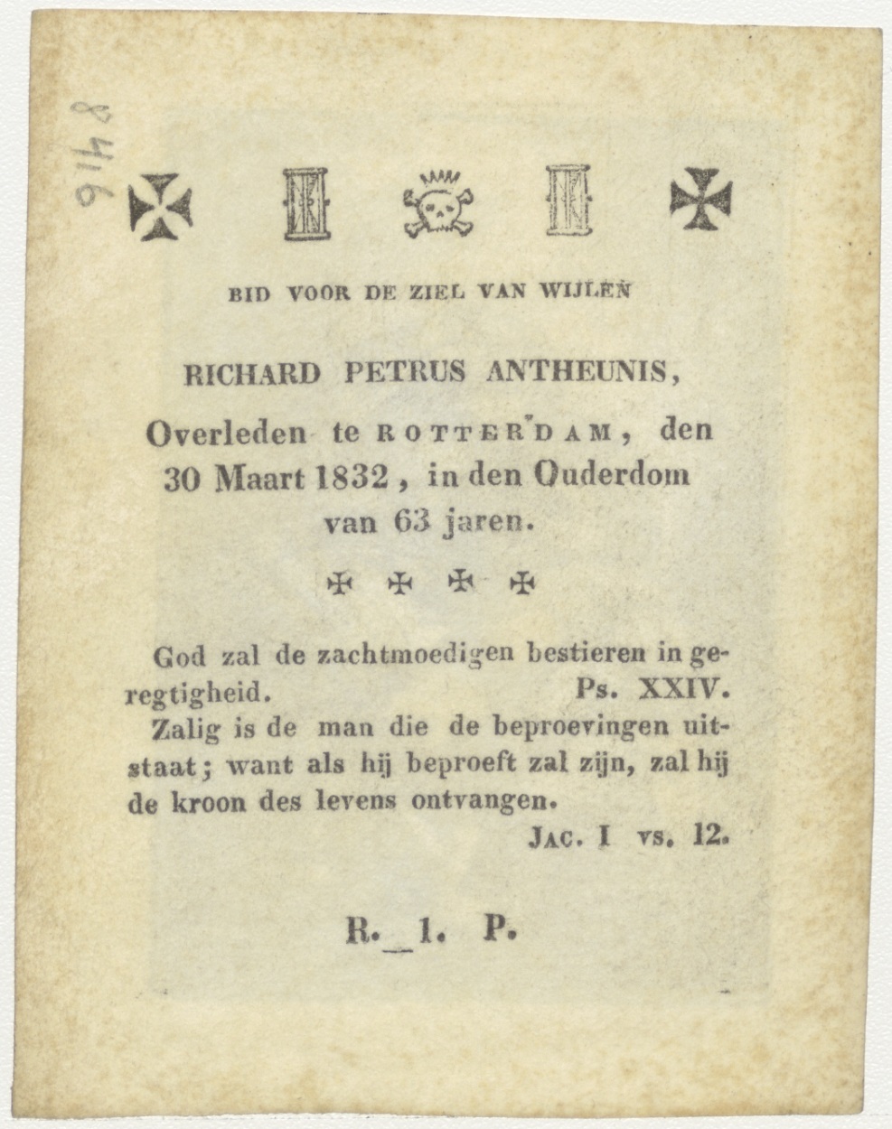 Maria met kind, kz. Bid voor ziel Antheunis (+1832) Rotterdam