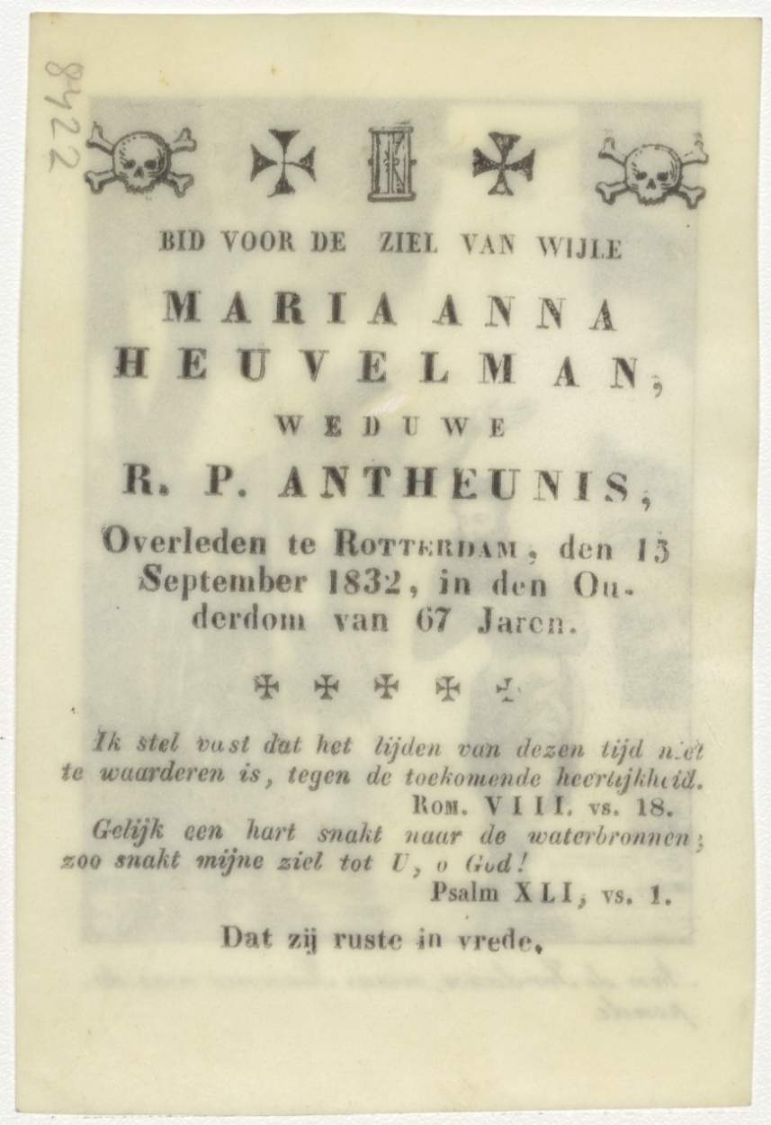 Doop van Christus in de Jordaan, kz. Bid voor ziel Antheunis-Heuvelmans (+1832) Rotterdam