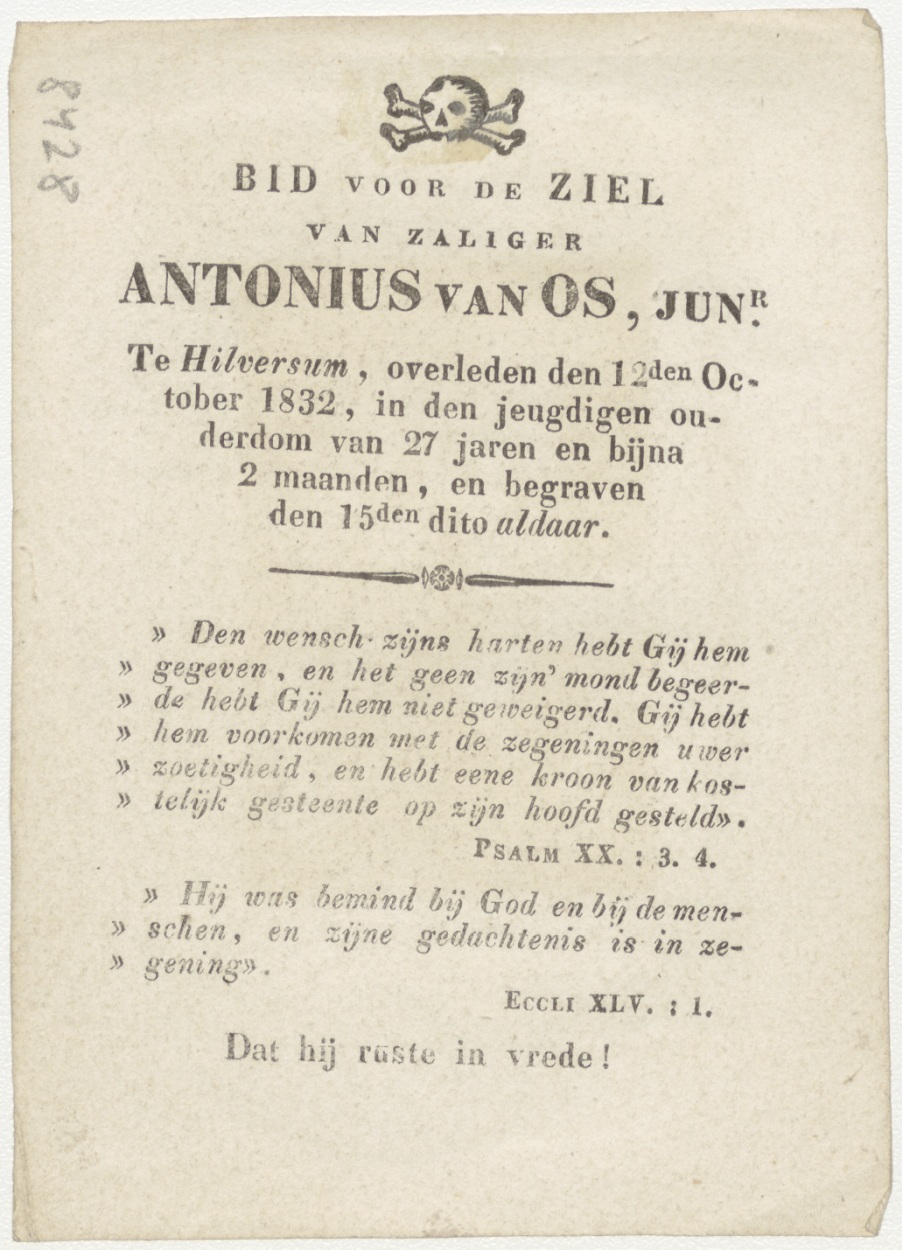 H. Francois (Frans), kz. Bid voor ziel Van Os (+1832) Hilversum