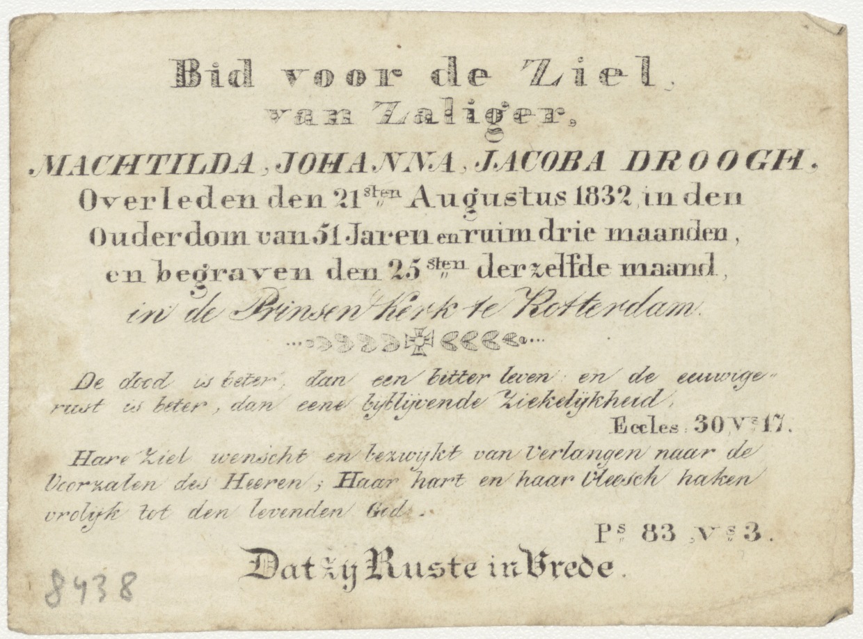 H. Maria, kz. bid voor ziel Machtilda Johanna Jacoba Droogh (+1832) Rotterdam