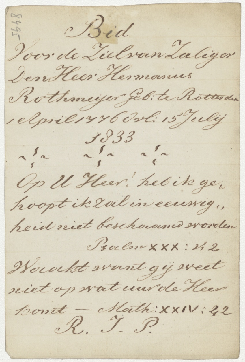 H. Maria, kz. Bid voor ziel Rottmeyer (+1833) Rotterdam