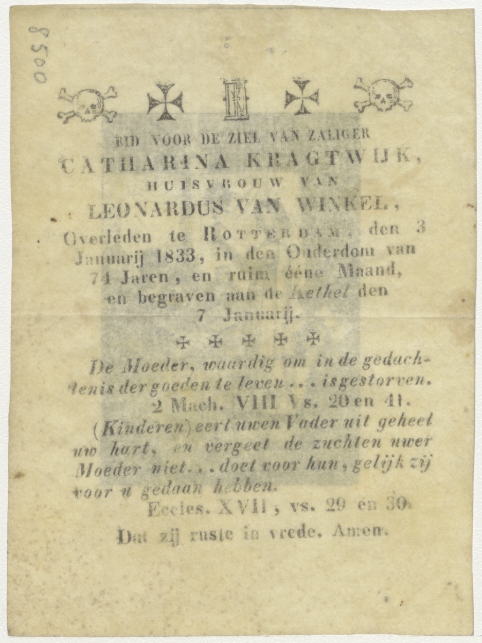 Priester voor altaar, kz. Bid voor ziel Kragtwijk-van Winkel (+1833) Rotterdam