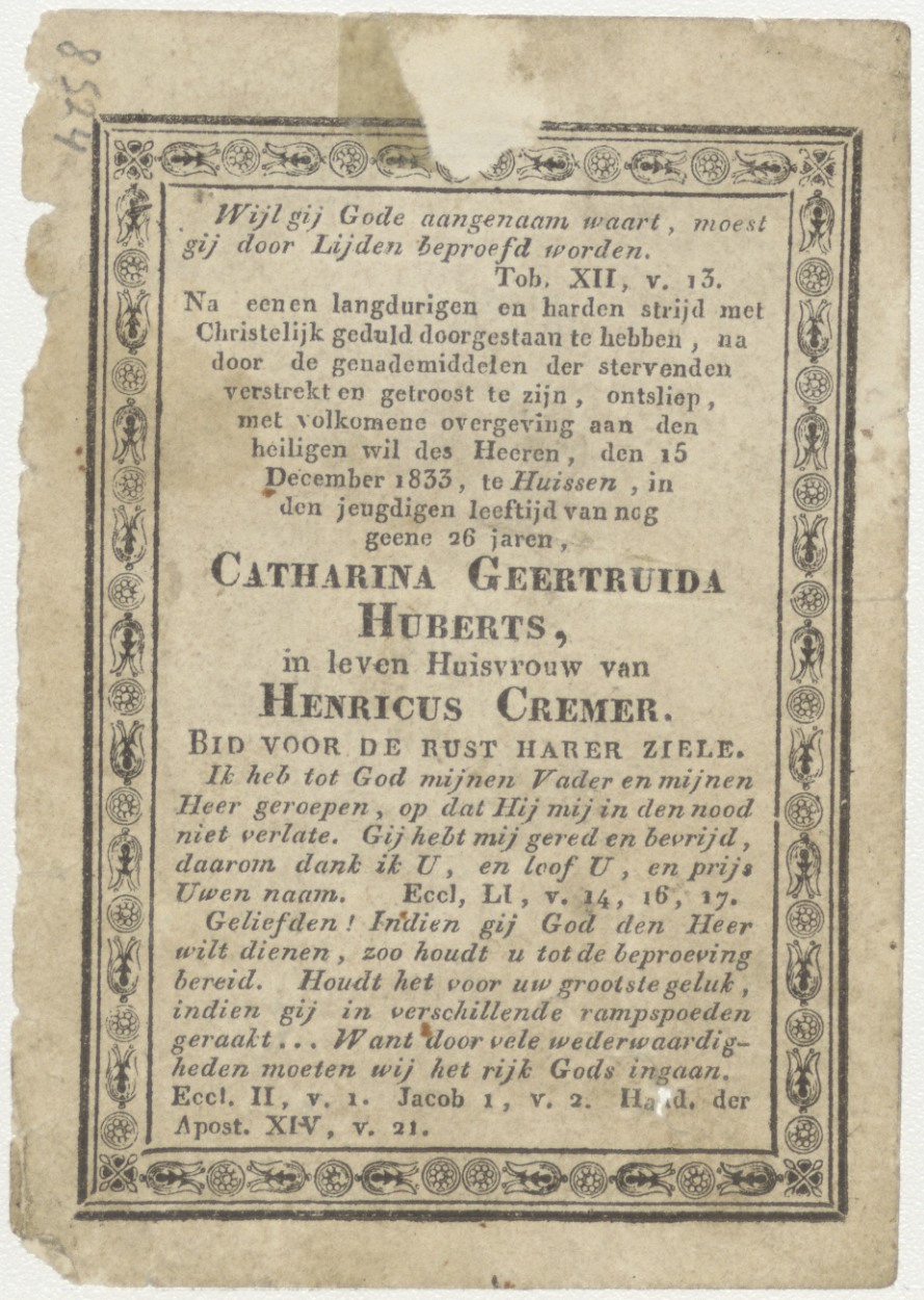 H. Theresia, kz. Bid voor ziel Hubert-Cremer (+1833) Huissen