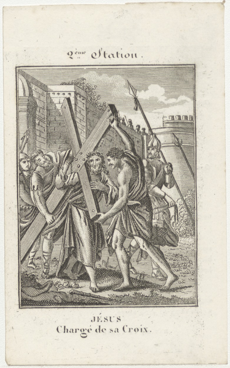 Passiescène (2e statie) Christus draagt het kruis (Frans), kz. Bid voor ziel Van den Bergh-Heerden (+1838) Utrecht