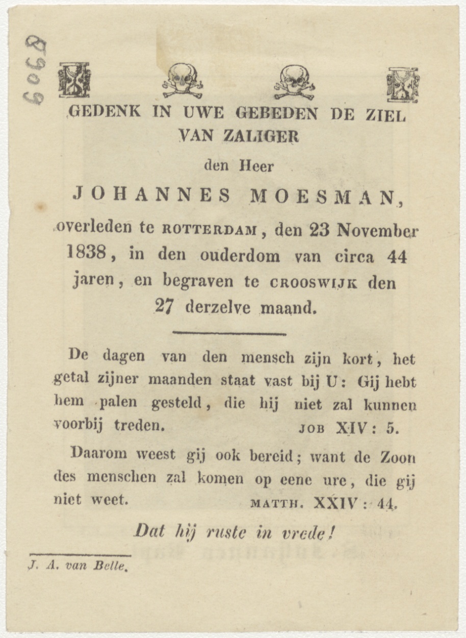 H. Johannes de Doper, kz. Bid voor ziel Moesman (+1838) Rotterdam