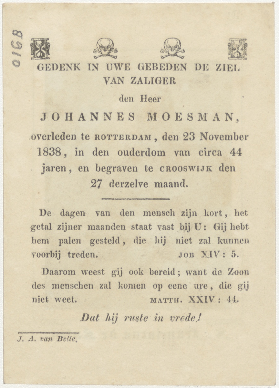 H. Franciscus de Sales, kz. Bid voor ziel Moesman (+1838) Rotterdam