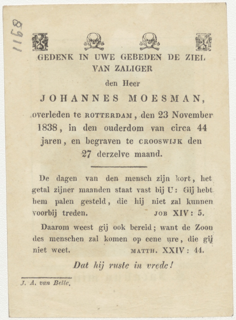 H. Jacobus Minor, kz. Bid voor ziel Moesman (+1838) Rotterdam