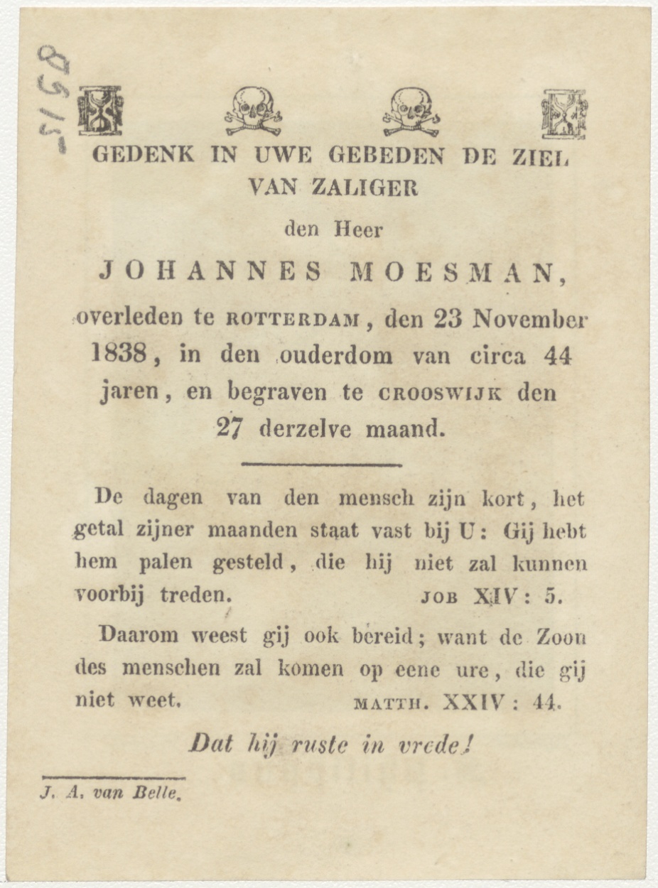 H. Philippus, kz. Bid voor ziel Moesman (+1838) Rotterdam