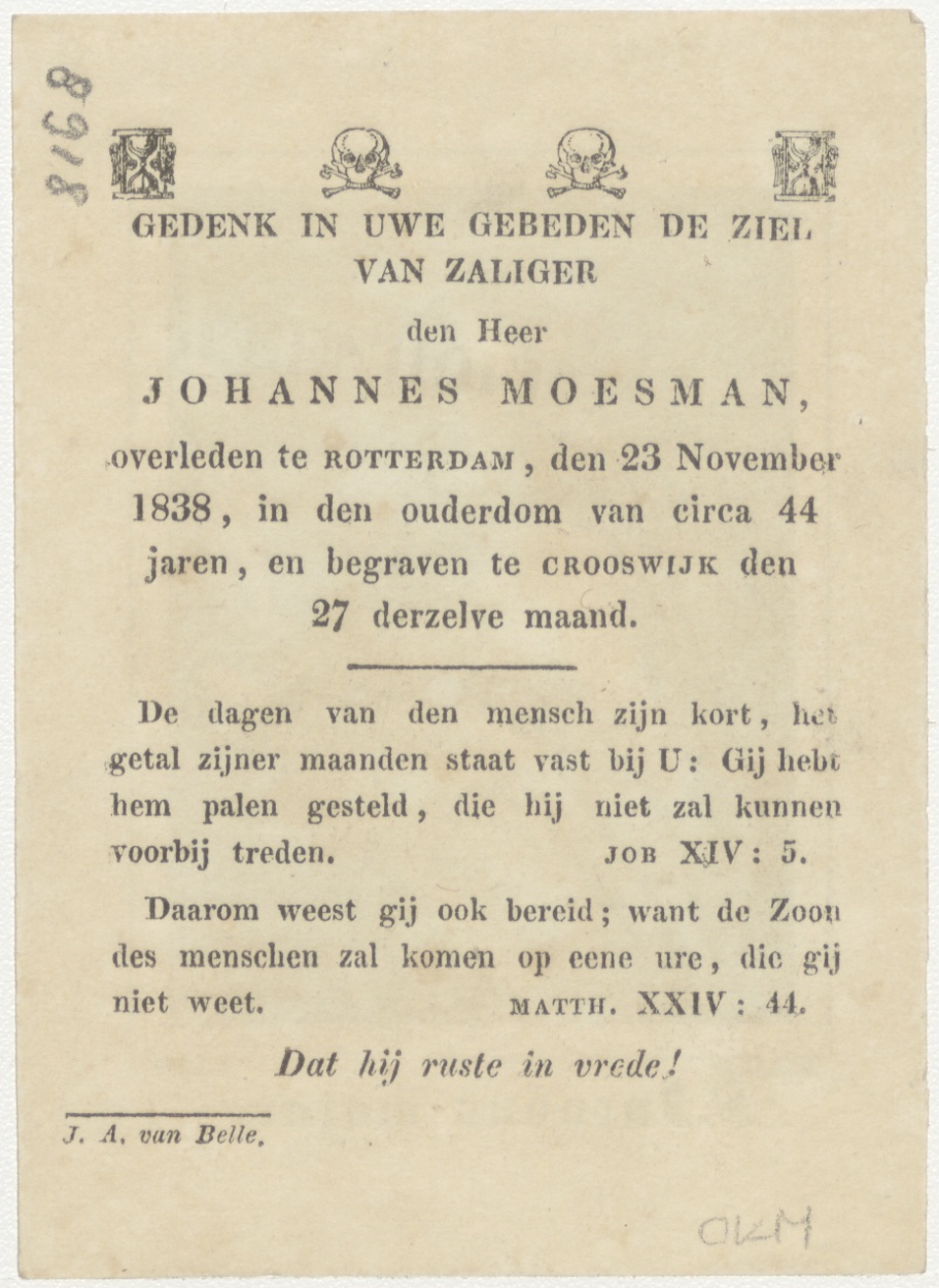 H. Jacobus Maior, kz. Bid voor ziel Moesman (+1838) Rotterdam