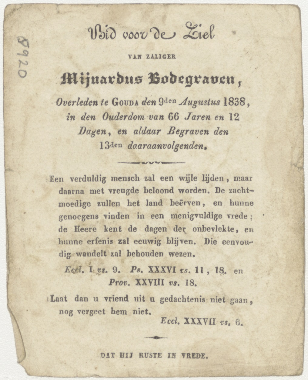 H. Wilhelmus, kz. Bid voor ziel Bodegraven (+1838) Gouda