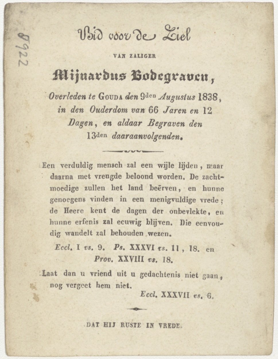 H. Eulalia, kz. Bid voor ziel Bodegraven (+1838) Gouda