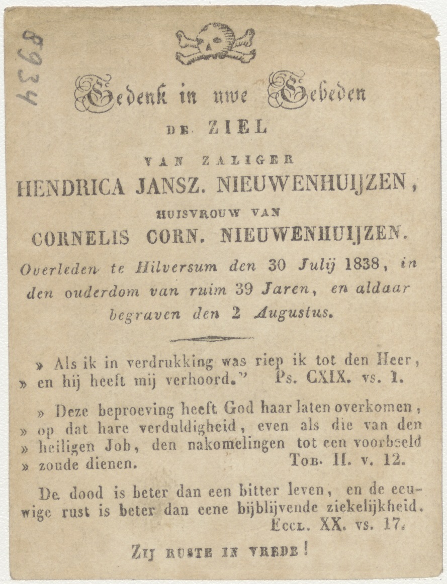 H. Cecile, kz. Bid voor ziel Nieuwenhuyzen (+1838) Hilversum