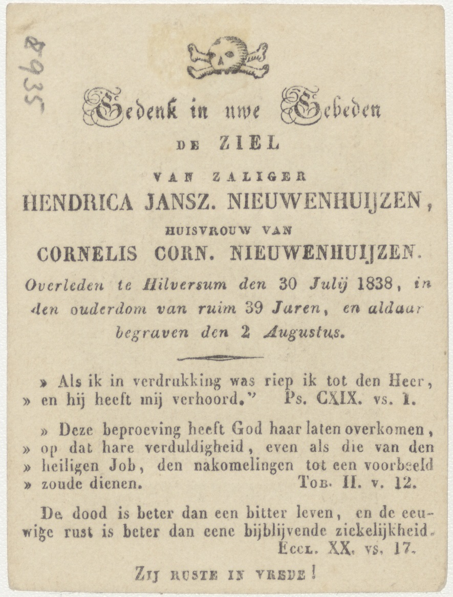 H. Vincent de Paul, kz. Bid voor ziel Nieuwenhuyzen (+1838) Hilversum