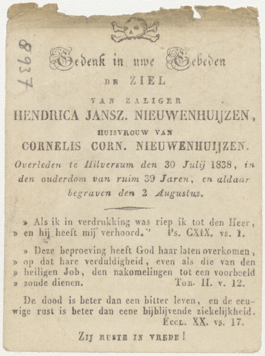 H. Etienne, kz. Bid voor ziel Nieuwenhuyzen (+1838) Hilversum