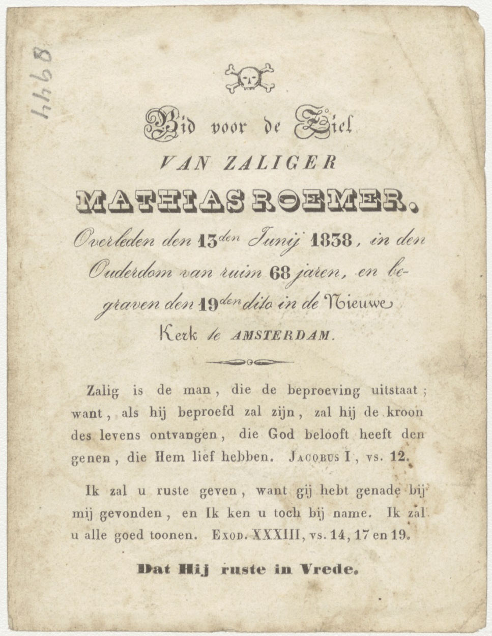 H. Marguerite, kz. Bid voor ziel Roemer (+1838) Amsterdam