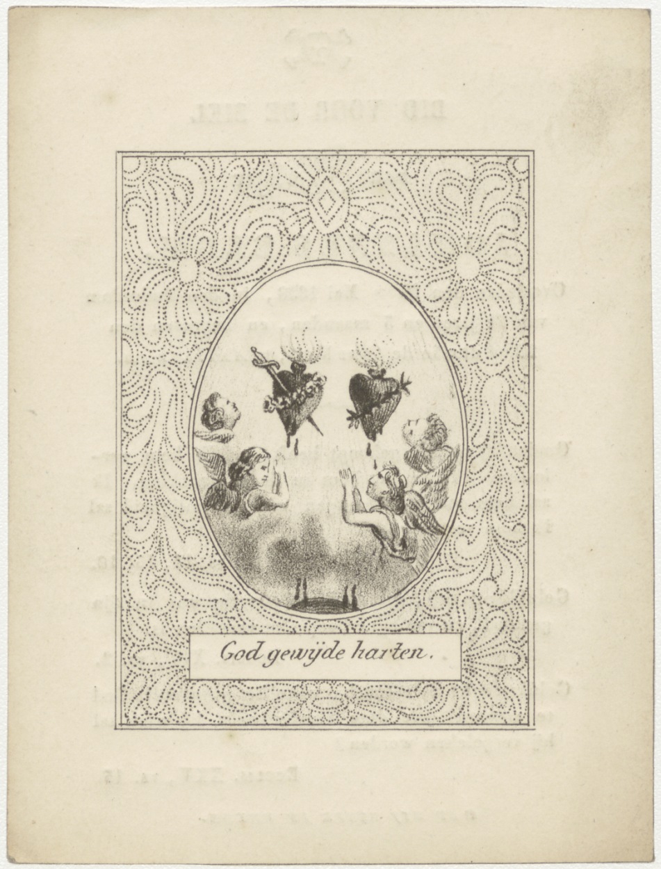 Twee harten, God gewijde harten, kz. Bid voor ziel Van Os-Karsten (+1836) Enkhuizen