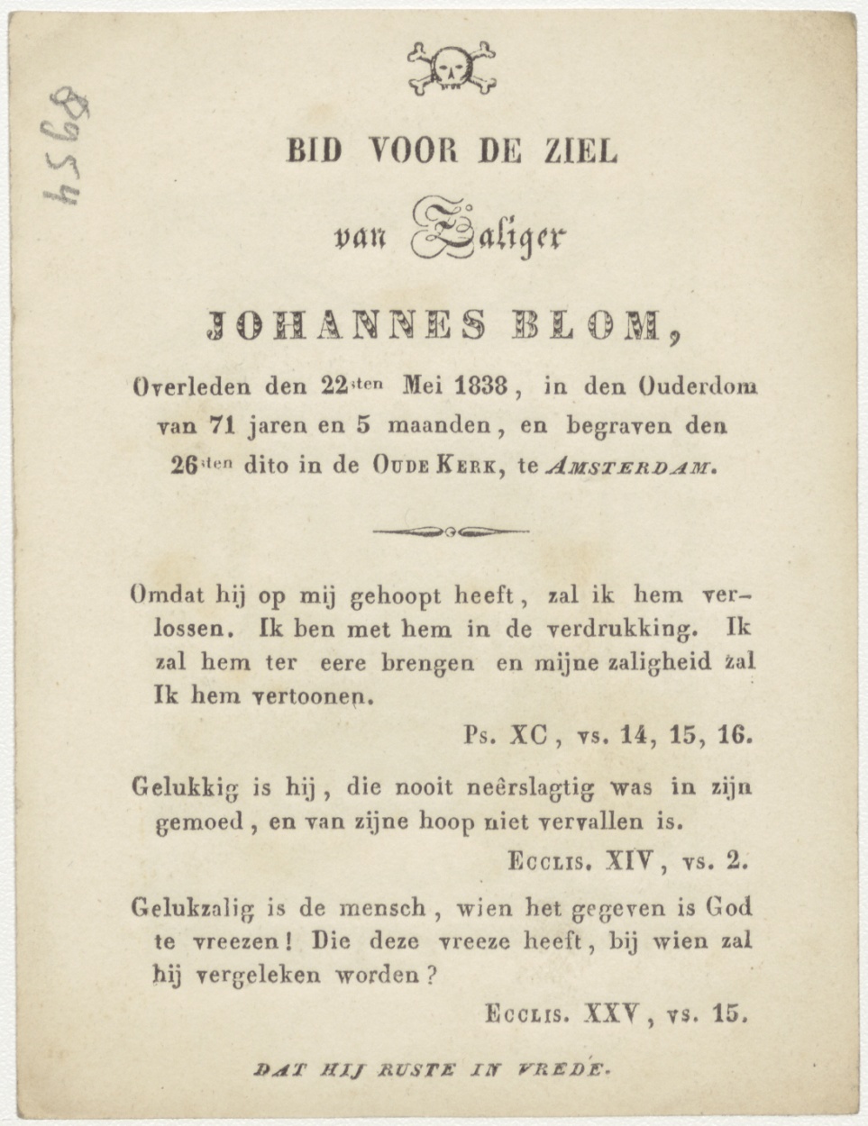 Heer help mij, kz. Bid voor ziel Blom (+1838) Amsterdam