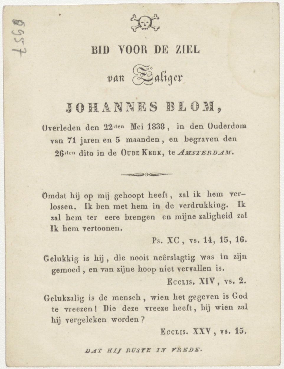 Christus geboorte, kz. Bid voor ziel Blom (+1838) Amsterdam