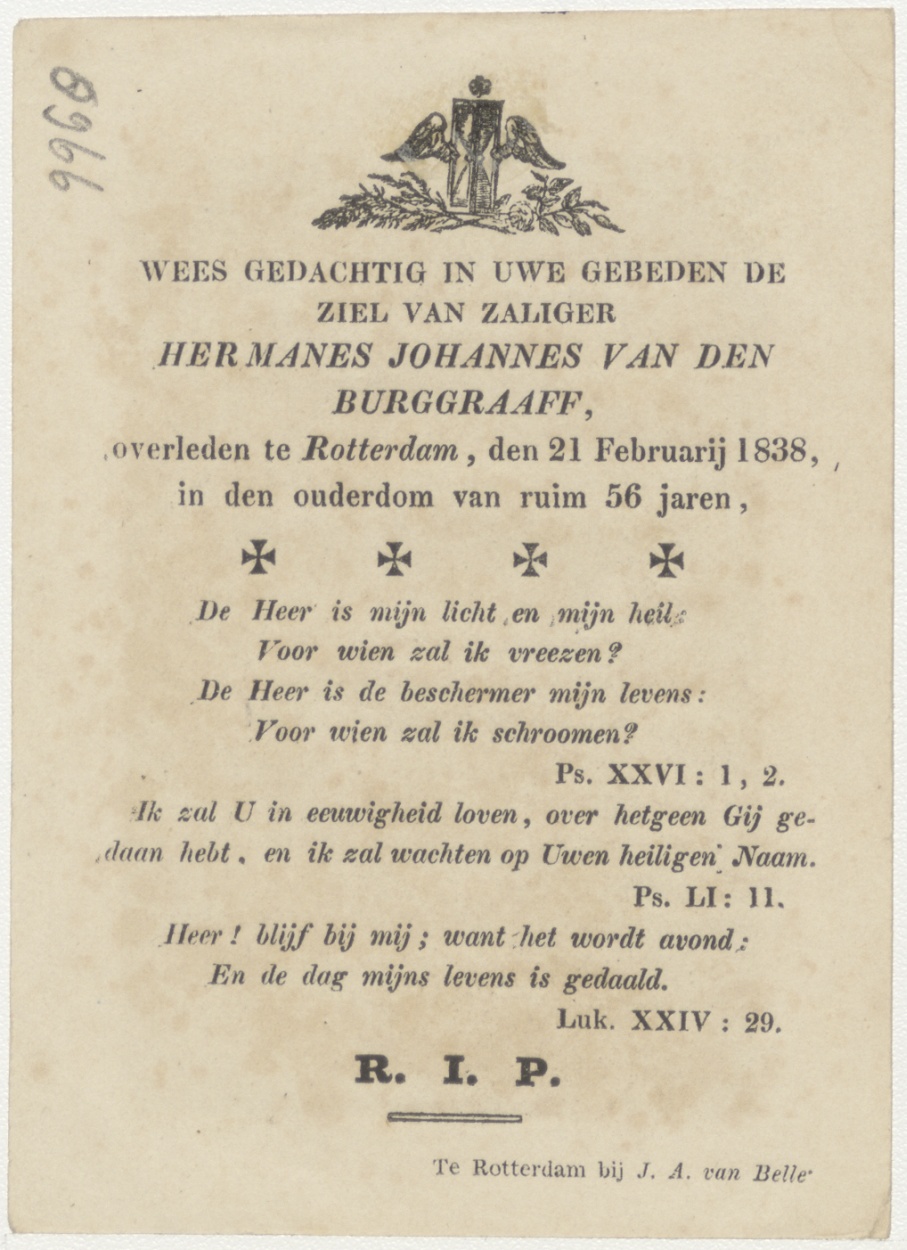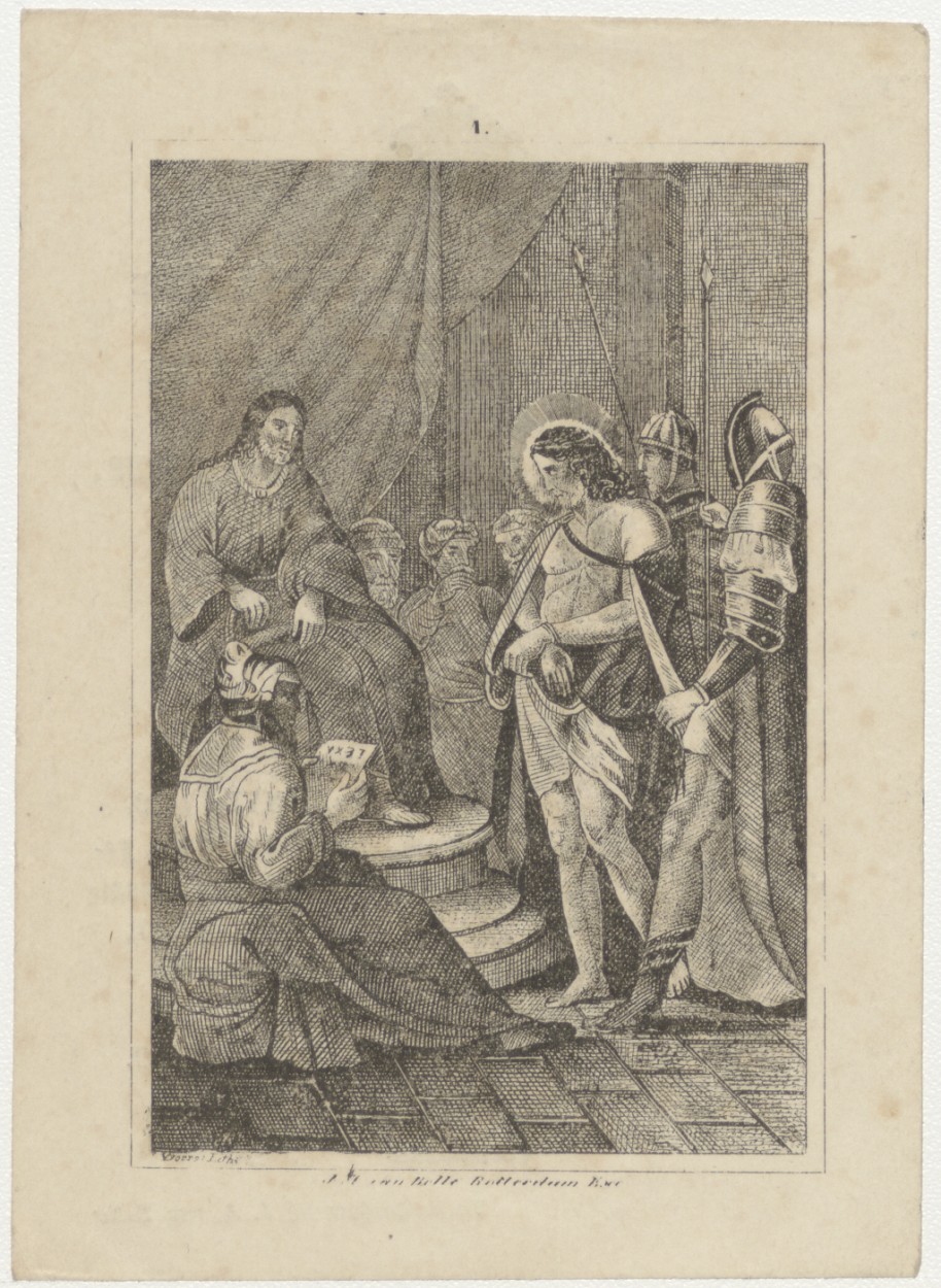 Passiescène (1e statie) Christus voor Pilatus, kz. Bid voor ziel Burggraaf (+1838) Rotterdam