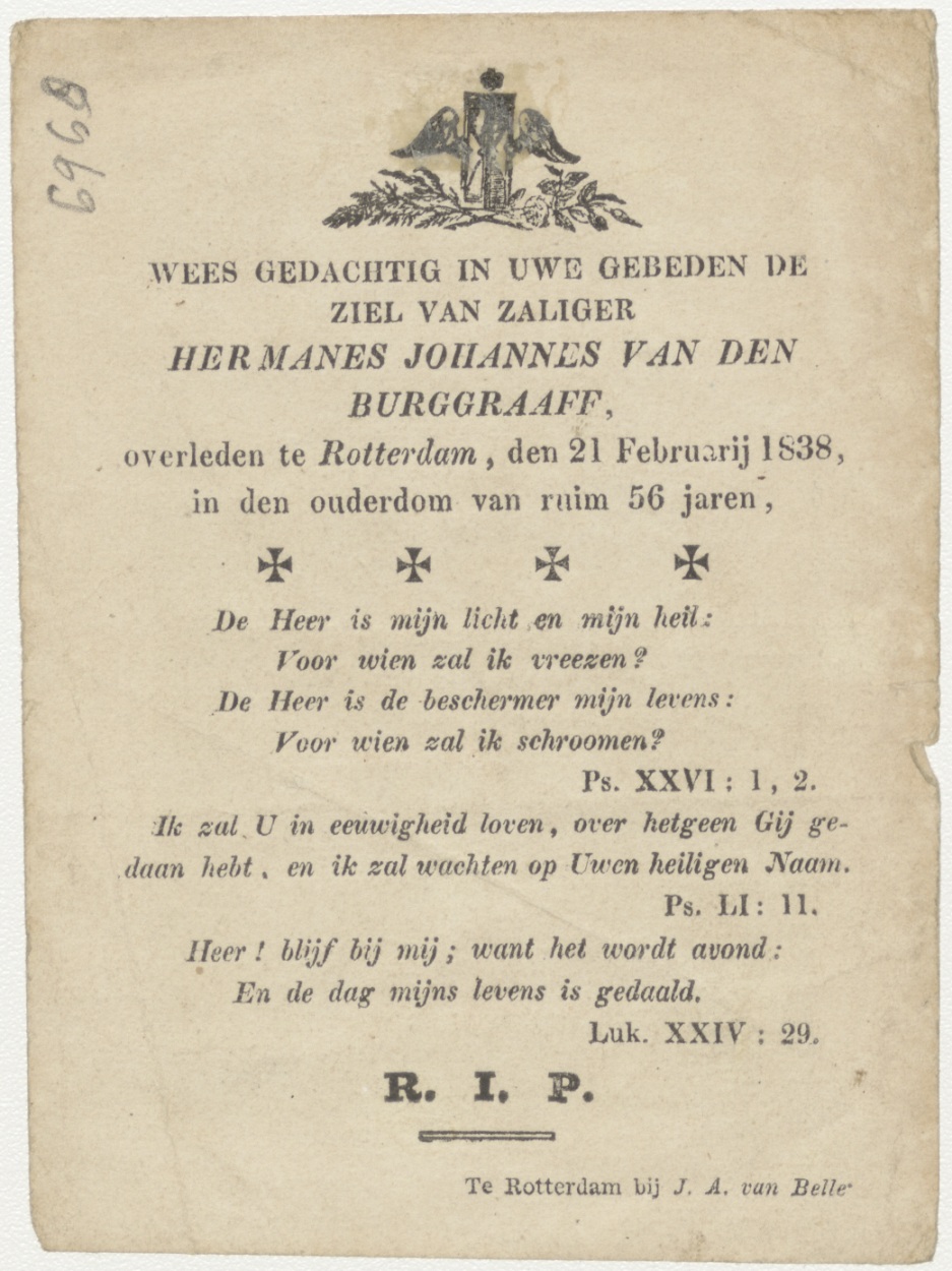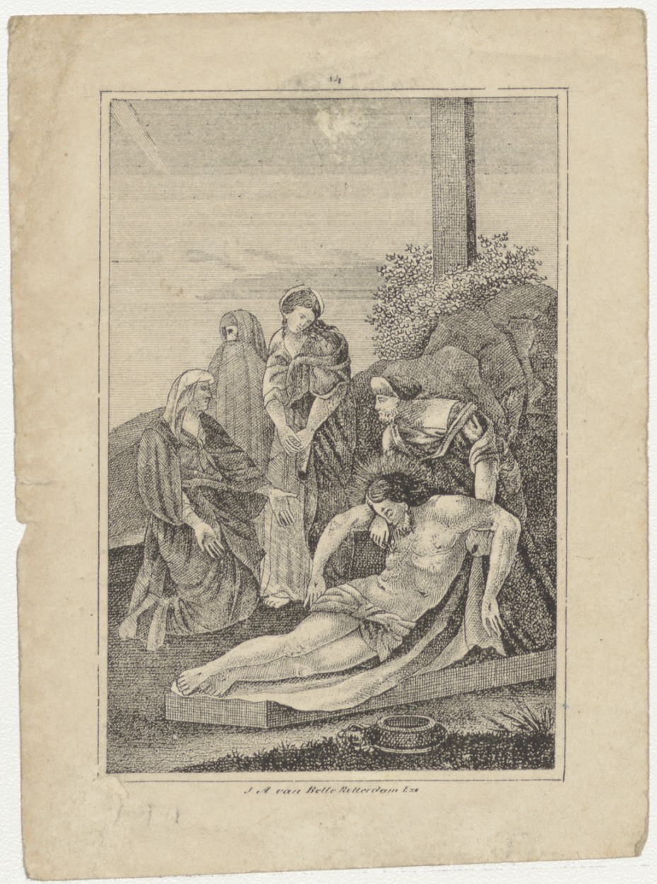 Passiescène (14e statie) Kruisafneming van Christus, kz. Bid voor ziel Burggraaf (+1838) Rotterdam