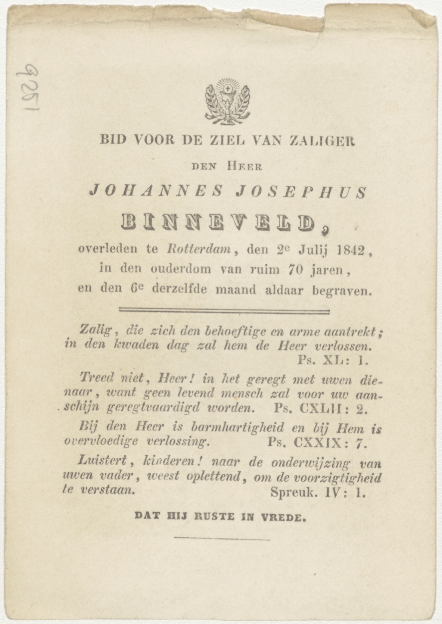 Geboorte van Christus, kz. Bid voor ziel Binneveld (+1842) Rotterdam