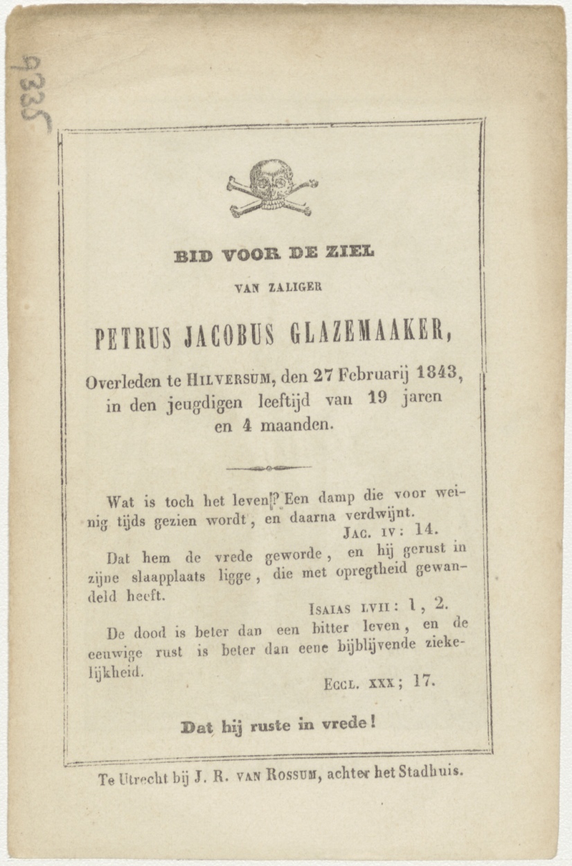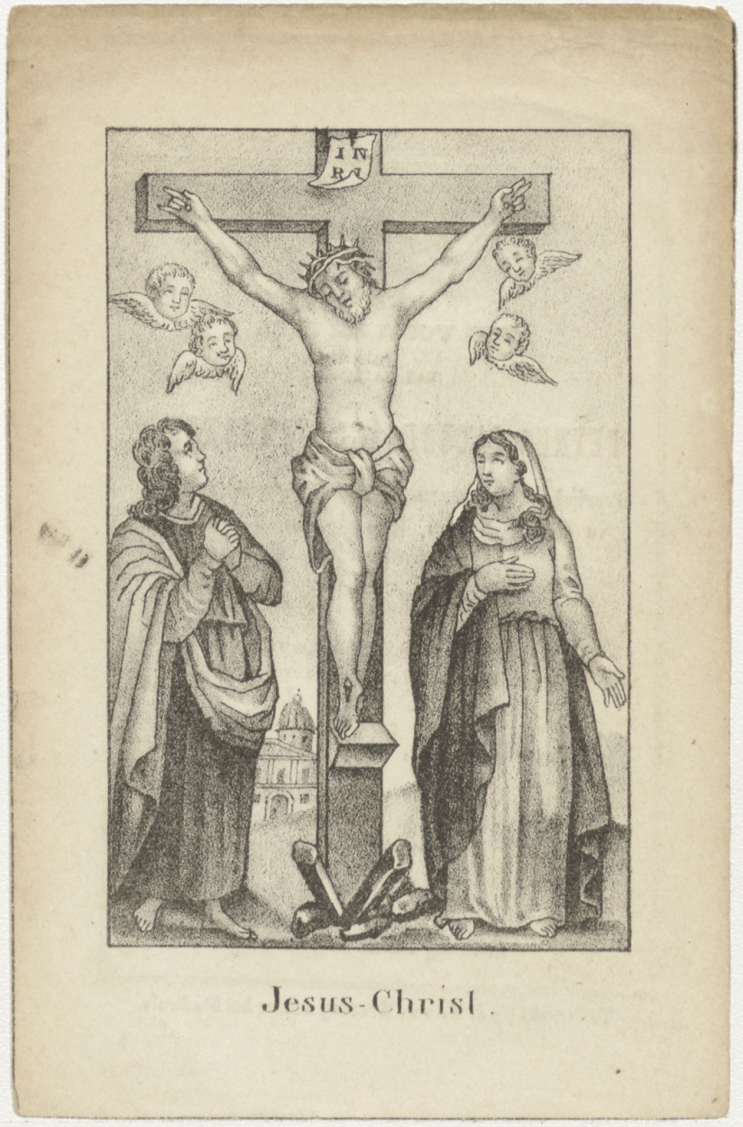 Gekruisigde Christus (Frans), kz. Bid voor ziel Glazemaaker (+1843) Hilversum