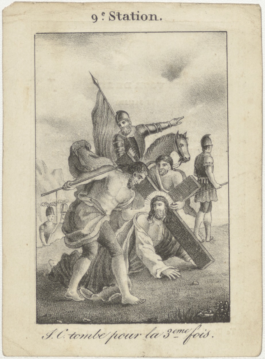 Passiescène (9e statie) Christus valt voor de derde maal (Frans), kz. Bid voor ziel Bartholomeus van Raalten (+1843), Culenborg