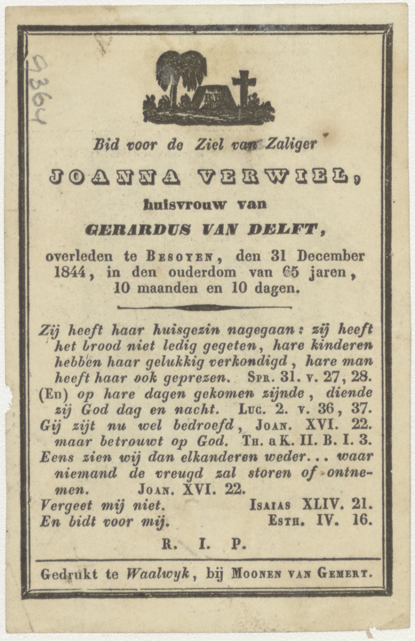 H. Theresia, kz. Bid voor ziel Verwiel-van Delft (+1844) Besoyen