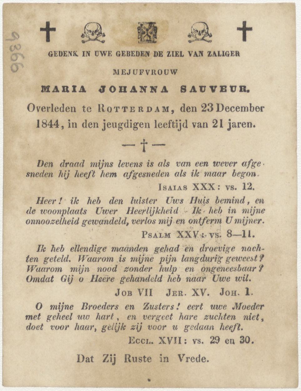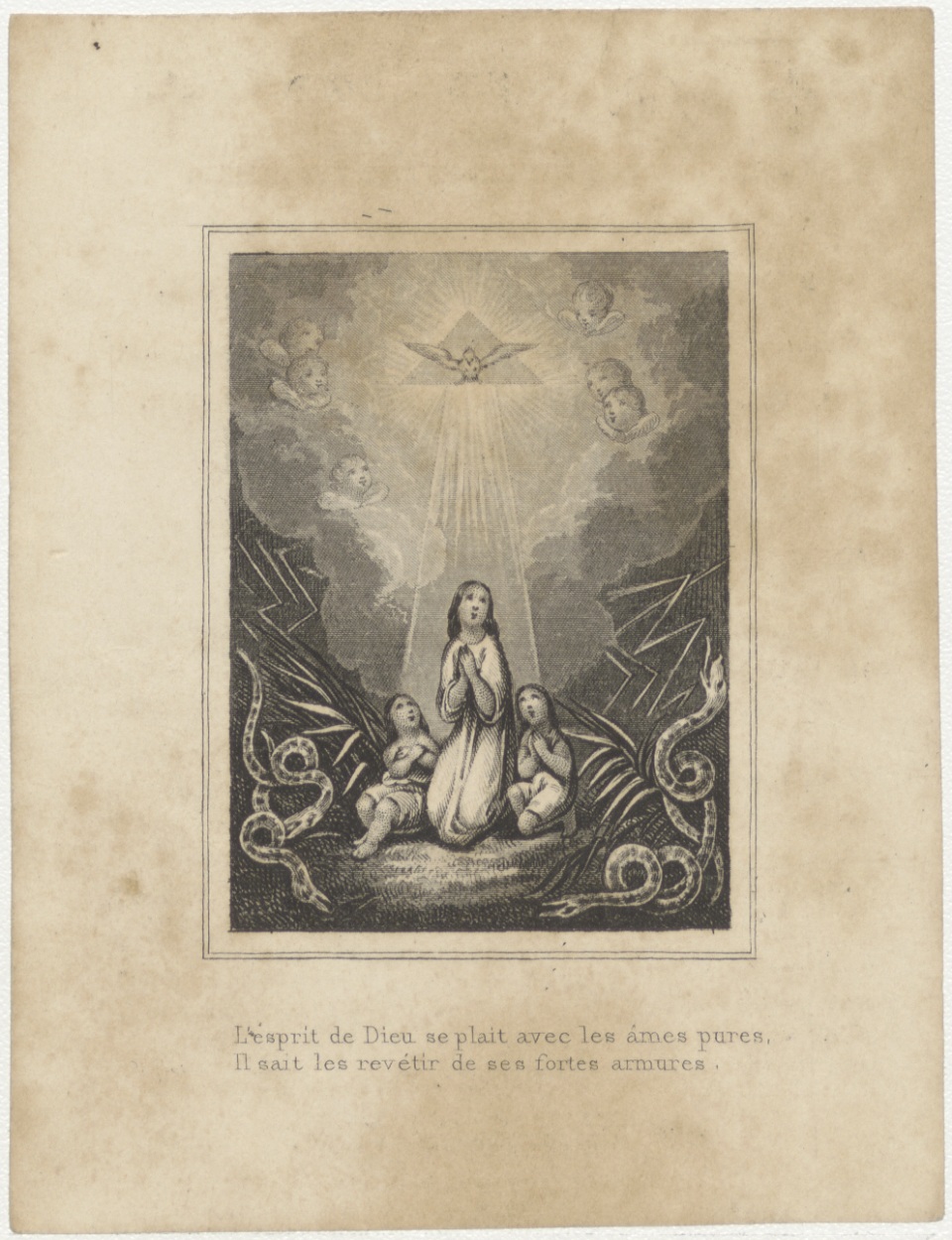 H. Geest boven vrouw en twee kinderen (Frans), kz. Bid voor ziel Sauveur (+1844) Rotterdam