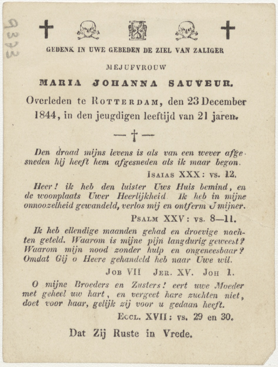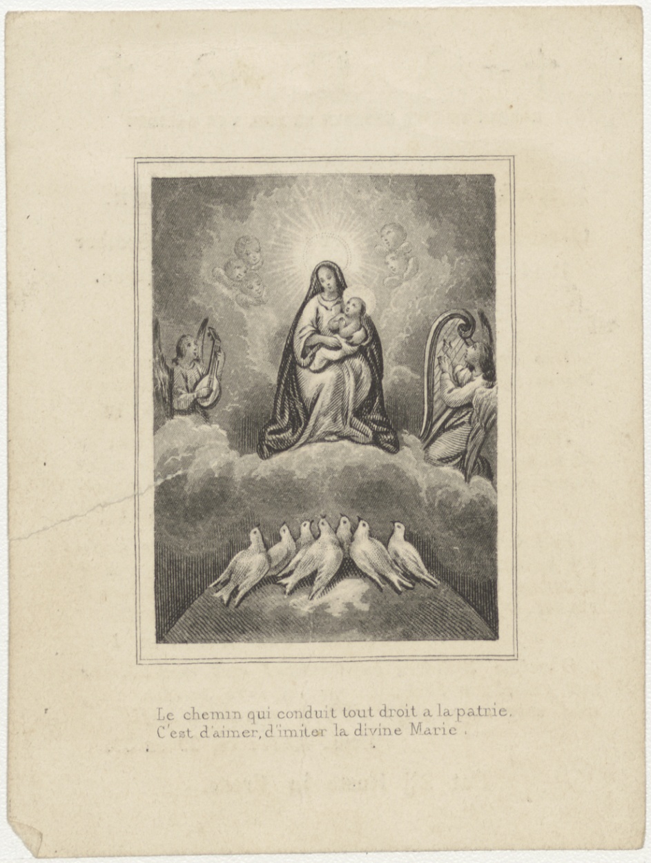 Maria met Christuskind op wolk (Frans), kz. Bid voor ziel Sauveur (+1844) Rotterdam