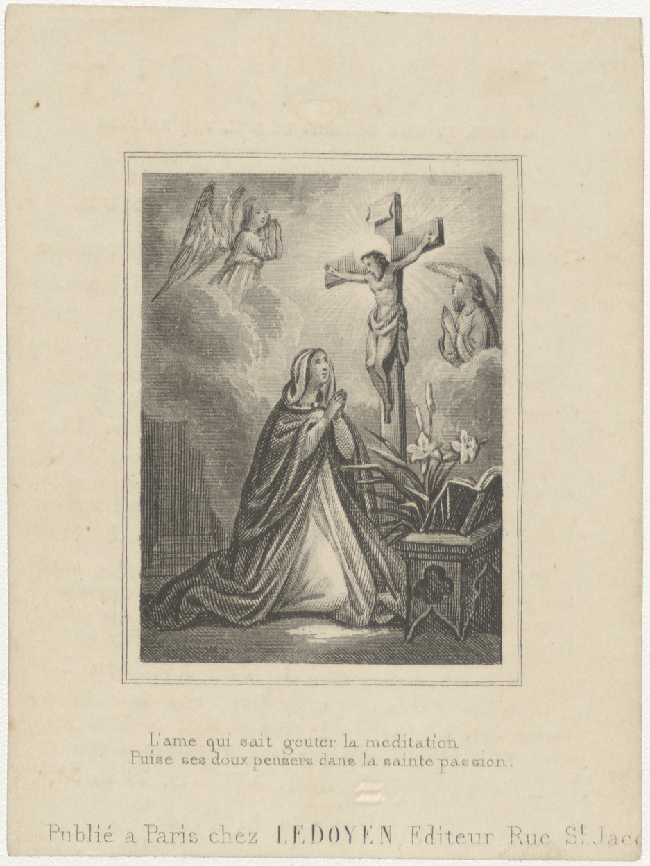 Vrouw biddend voor kruis (Frans), kz. Bid voor ziel Maria Johanna Sauveur (+1844) Rotterdam