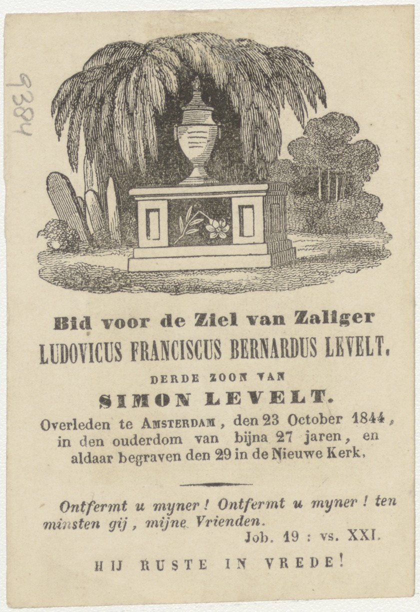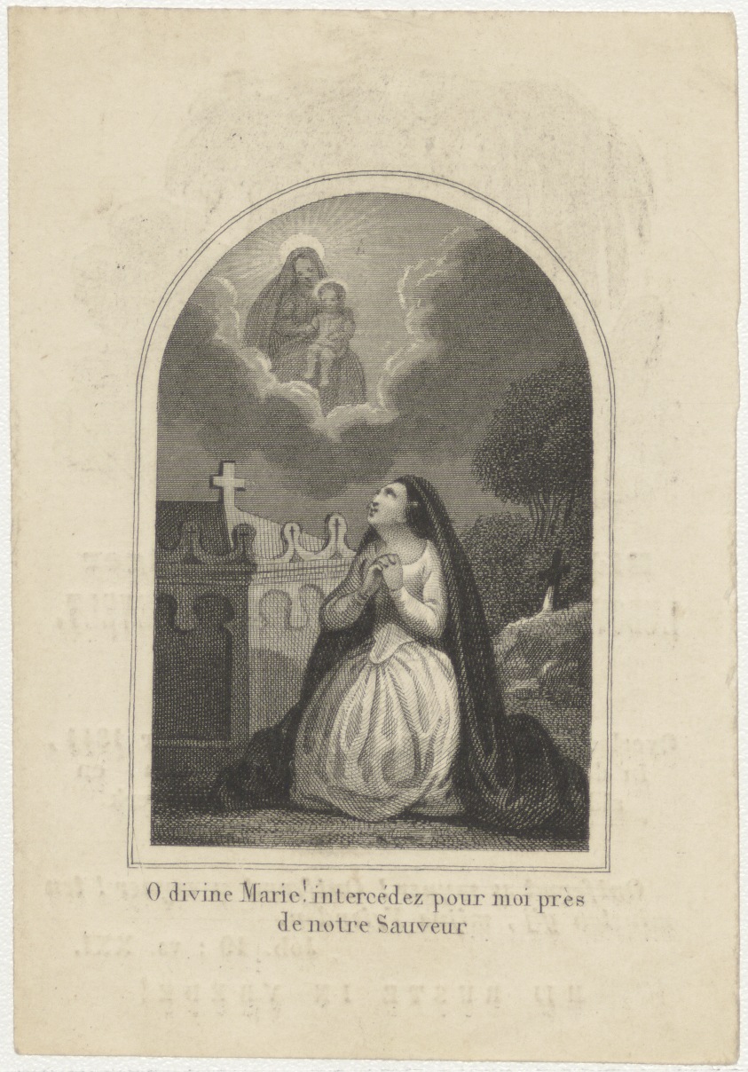 Vrouw biddend tot Maria (Frans), kz. Bid voor ziel Levelt (+1844) Amsterdam