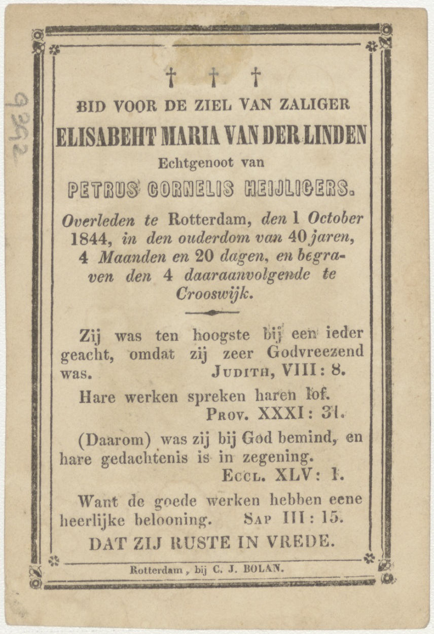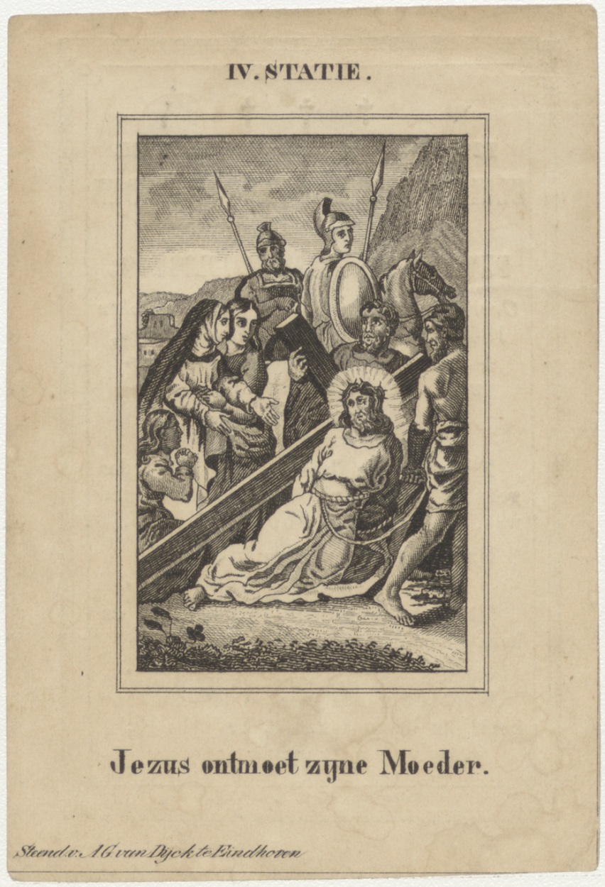 Passiescène (4e statie) Christus ontmoet zijn moeder, kz. Bid voor ziel Heyligers-van der Linden (+1844) Rotterdam