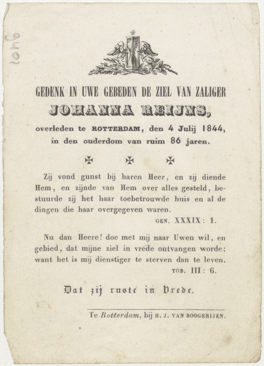 Maria van de Carmel (Frans), kz. Bid voor ziel Reijns (+1844) Rotterdam