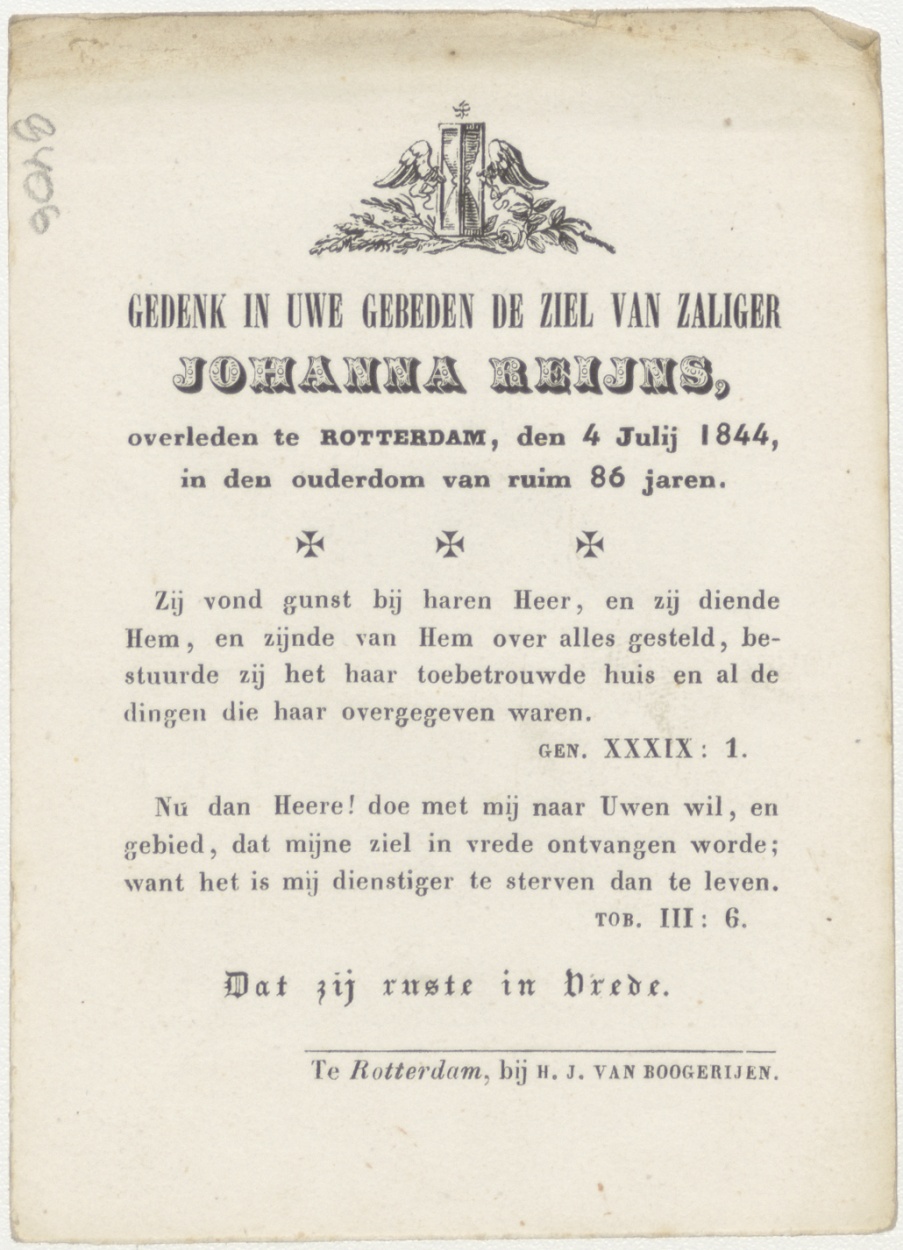 H. Zoe (Frans), kz. Bid voor ziel Reijns (+1844) Rotterdam