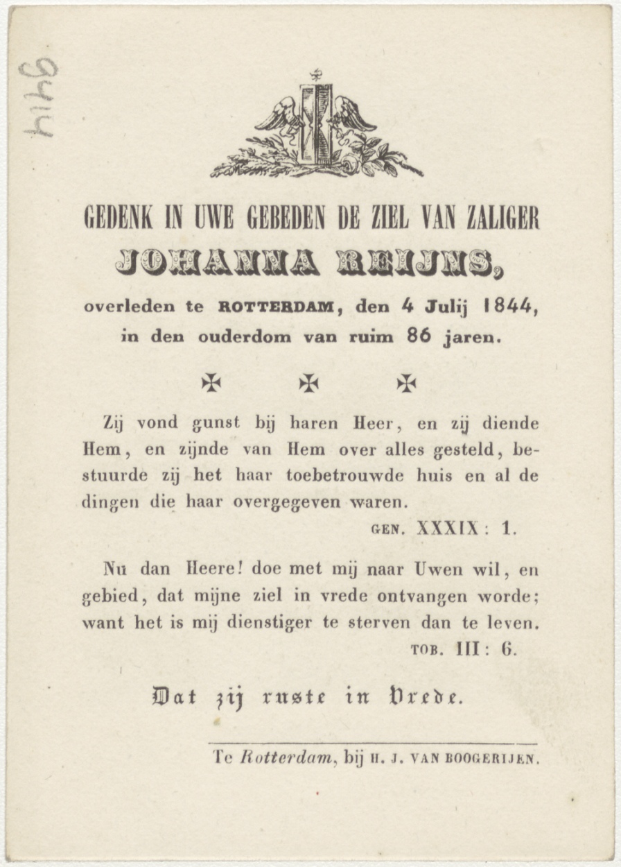 H. Simon (Frans), kz. Bid voor ziel Reijns (+1844) Rotterdam
