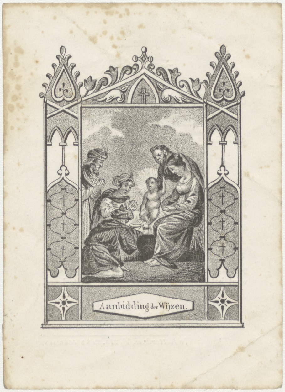 Aanbidding der koningen, driekoningen, kz. Bid voor ziel Reijns (+1844) Rotterdam