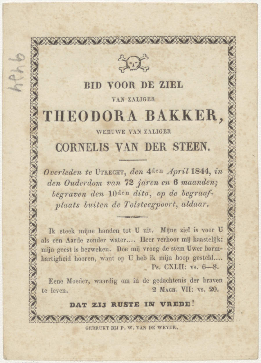 Kruisiging van Christus, kz. Bid voor ziel Van der Steen-Bakker (+1844) Utrecht