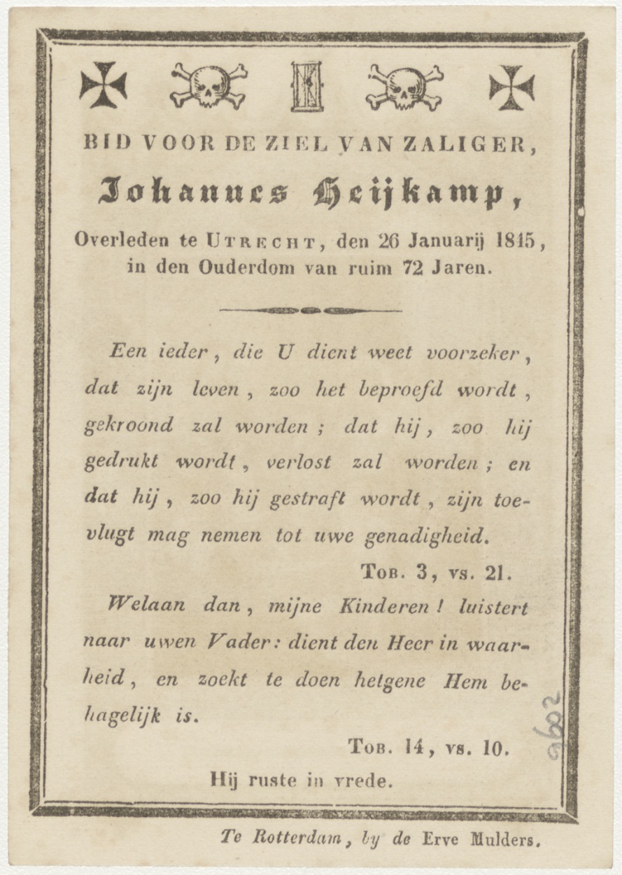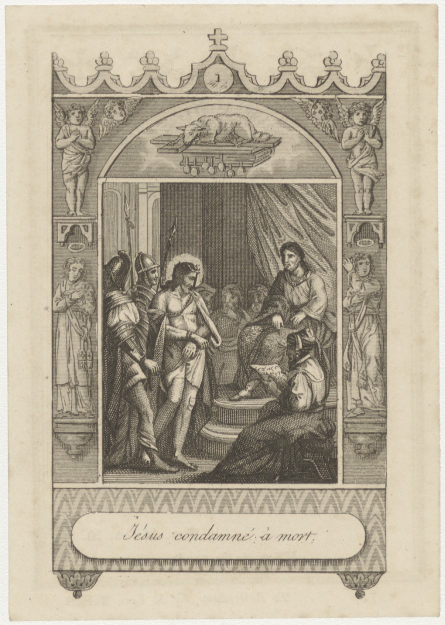 Passiescène (1e statie) Christus wordt ter dood veroordeeld, kz. Bid voor ziel Heykamp (+1845) Utrecht
