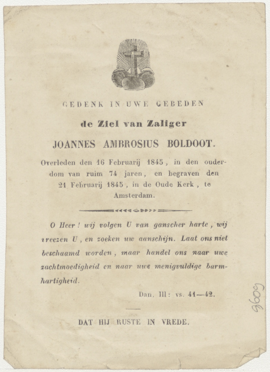 Allerheiligen (Frans), kz. Bid voor ziel Boldoot (+1845) Amsterdam