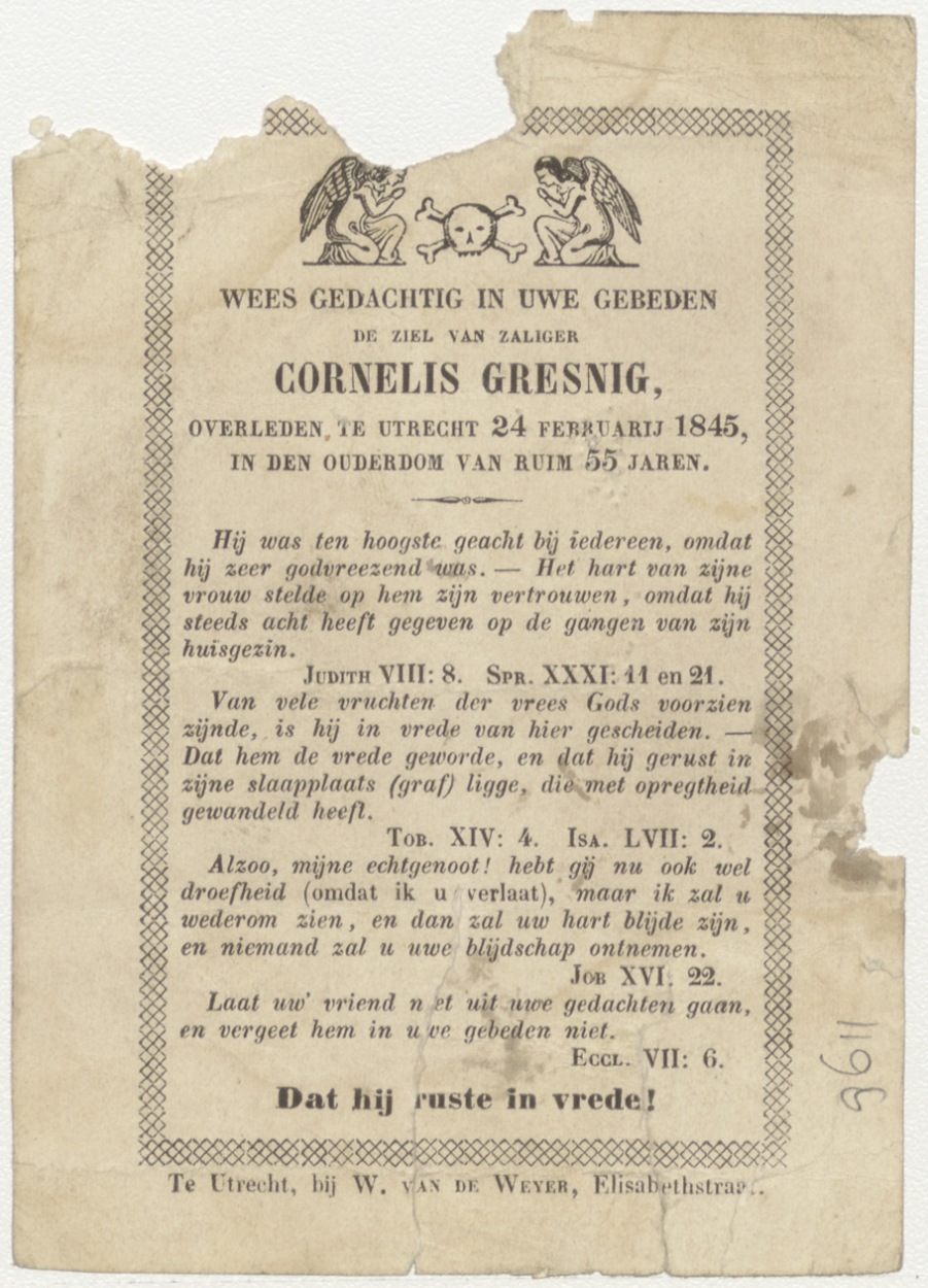 Christus draagt het kruis (Frans), kz. Bid voor ziel Gresnig (+1845) Utrecht