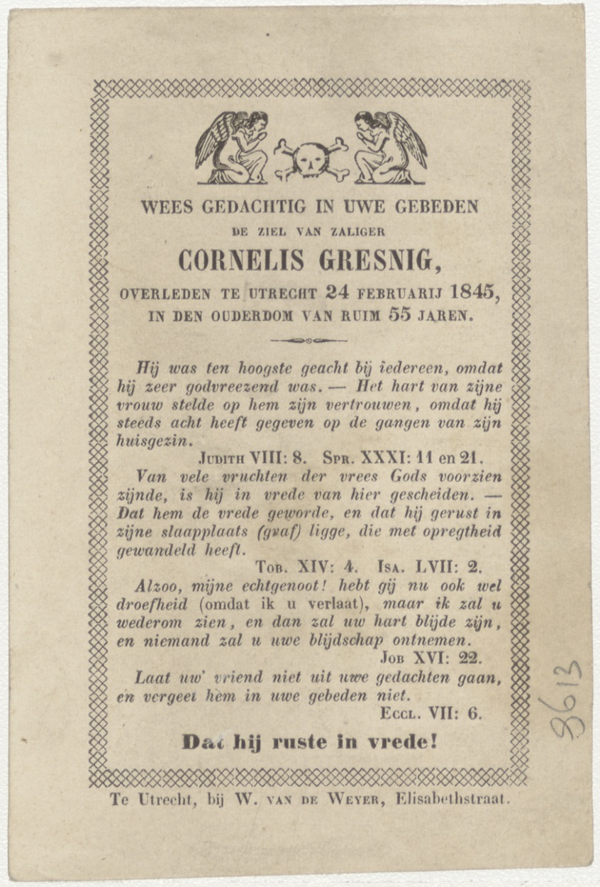 Maria, hulp aan de lijdende (Frans), kz. Bid voor ziel Gresnig (+1845) Utrecht
