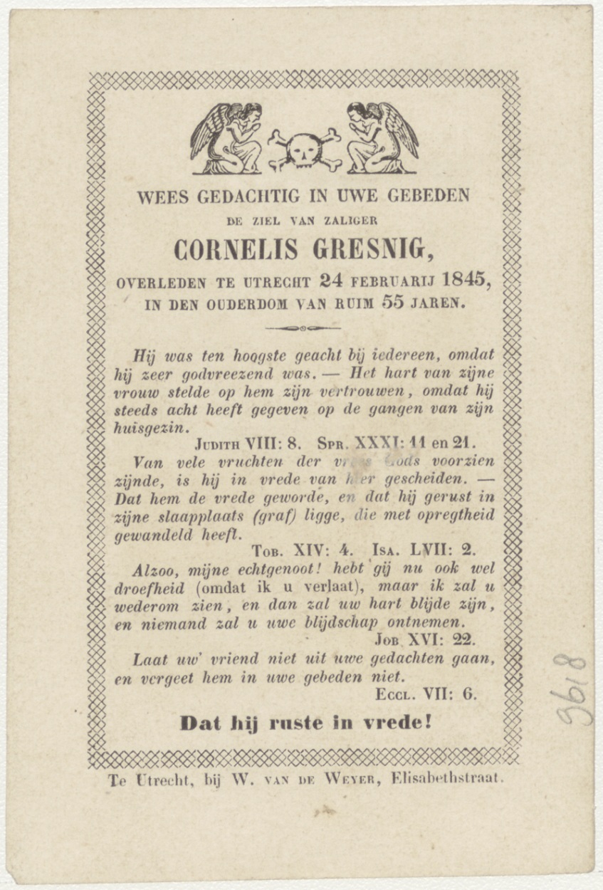Volgt Christus na, kz. Bid voor ziel Gresnig (+1845) Utrecht